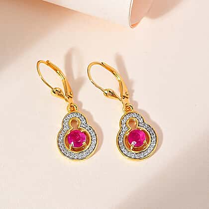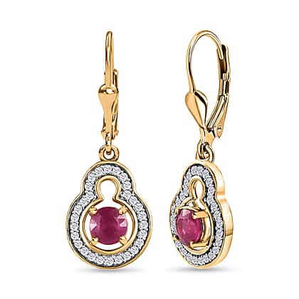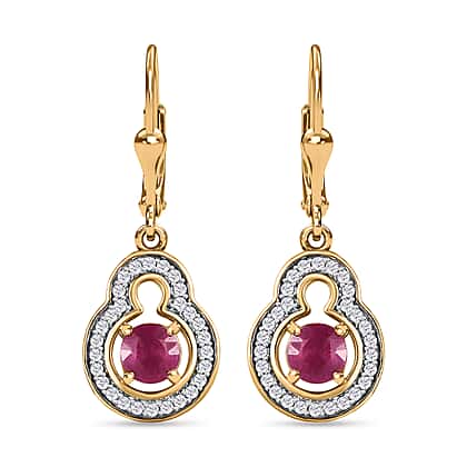 Niassa Ruby & Natural Zircon Earrings in 18K Yellow Gold Vermeil Plated Sterling Silver 2.03 Ct.