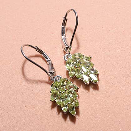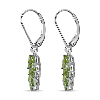 Hebei Peridot Dangle Earrings in Platinum Overlay Sterling Silver 2.00 Ct