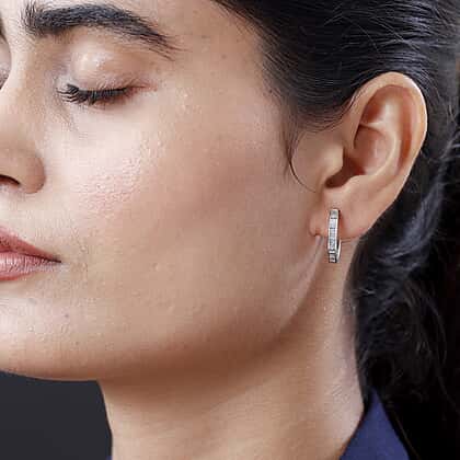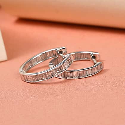 You would love to wear these diamond hoop earrings for years to come, with their bright sparkle and shine. It is made from 14K white gold with a fine polish to give it a luxe appeal. These inside-out hoop earrings are decorated with the baguette cut diamonds channel set in the frame for a dazzling look.