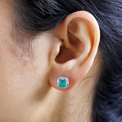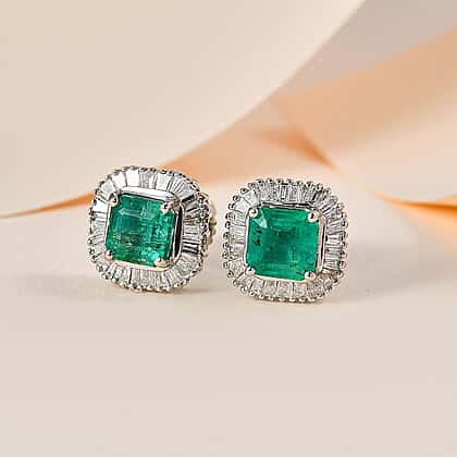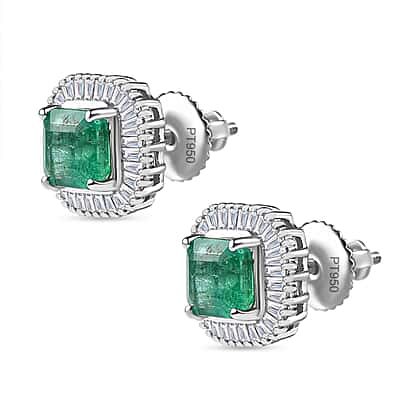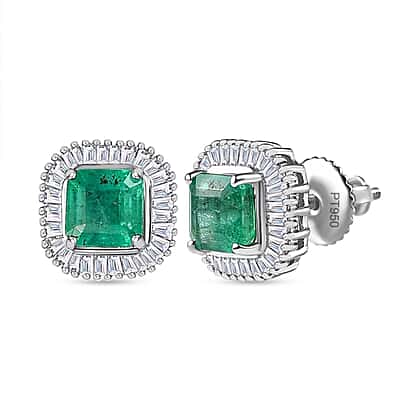 NY CloseOut - 950 Platinum AAA Gemfields Zambian Emerald & Diamond Stud Earrings 1.75 Ct. 3.31 Gms