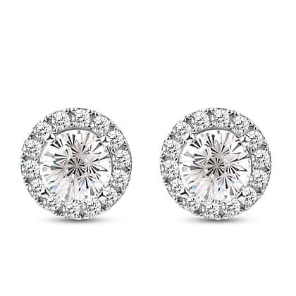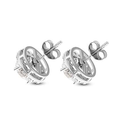 ELANZA Halo Simulated Diamond Detachable Earrings in Rhodium Plated Sterling Silver