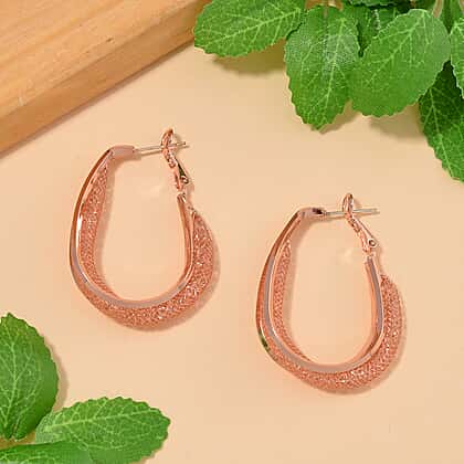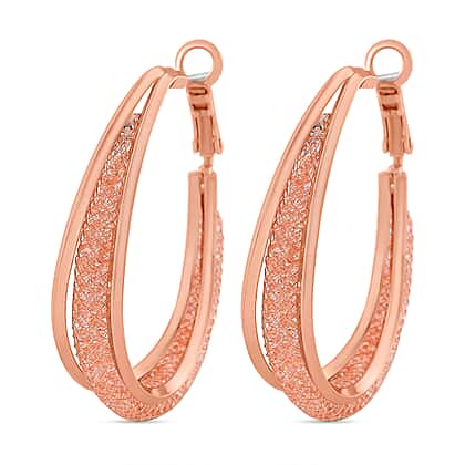 NY Closeout Deal- Star Light Crochet Austrian Pink Crystal Hoop Earrings in Rose Gold Tone