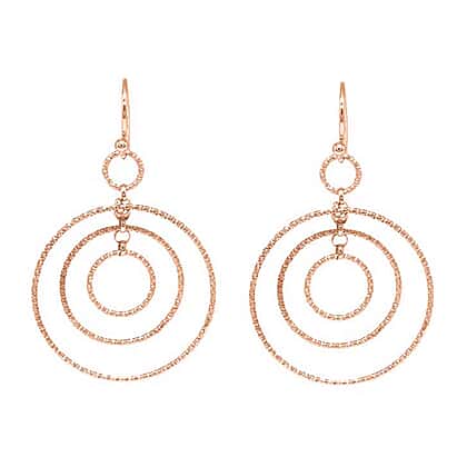Circle Textured Drop Earrings in Rose Gold Plated Sterling Silver