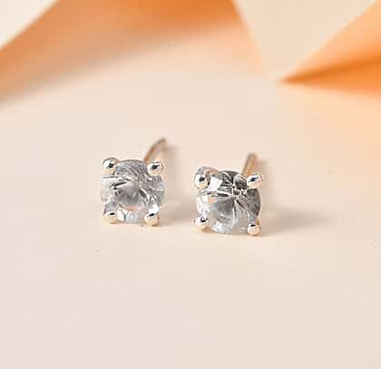 One Time Closeout - Petalite Solitaire Stud Earrings in Platinum Overlay Sterling Silver