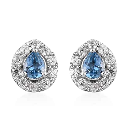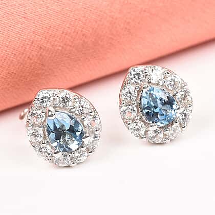 One time Deal - Santa Maria Aquamarine (Pear), Natural Cambodian Zircon Lever Back Earrings with Push Back in Platinum Overlay Sterling Silver 1.25 Ct.
