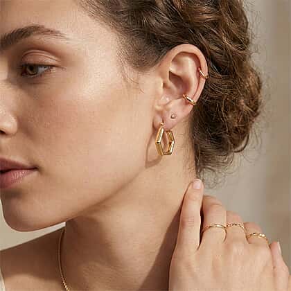 The classic beauty takes a new look of bold geometry with these 9K yellow gold hoop earrings. Featuring a sharp hexagonal shape, they blend modern design with timeless elegance. Crafted from hypoallergenic, tarnish-resistant gold, they suit even sensitive skin. The polished finish adds lustre that flatters every complexion. A secure clasp ensures all-day comfort and confidence. Lightweight yet statement-making, these hoops are perfect for work or weekend wear. Designed to symbolise structure and inner strength. Whether worn solo or stacked, they bring instant sophistication. Inspired by architectural elegance, they speak to the woman who values originality, precision and effortless style in every accessory she owns.