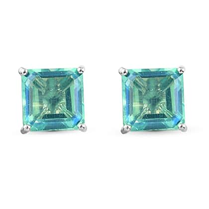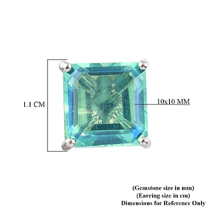 Peacock Quartz (Asscher 10x10mm) Stud Earrings (with Push Back) in Platinum Overlay Sterling Silver 9.670 Ct.