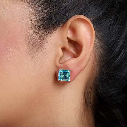9.67 Ct. Peacock Quartz Solitaire Stud Earrings in Platinum Plated Sterling Silver
