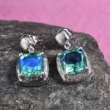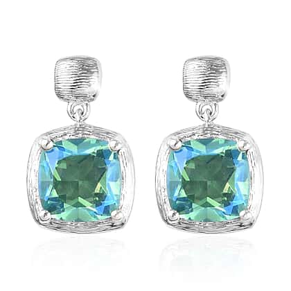 Peacock Quartz (Cush) Drop Earrings (with Push Back) in Platinum Overlay Sterling Silver 4.00 Ct.