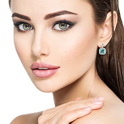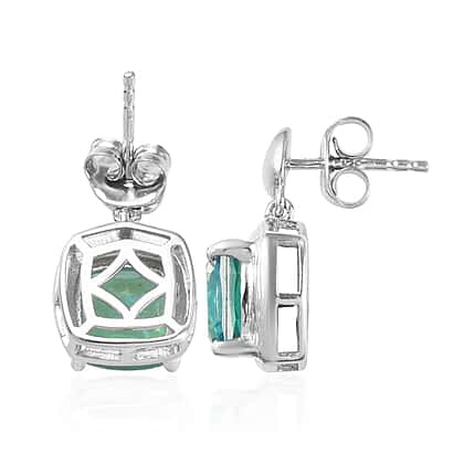 4 Carat Peacock Quartz Drop Earrings in Platinum Plated Sterling Silver