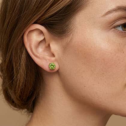 Captivates the heart with its vivid green brilliance, these peridot solitaire stud earrings are defined by the natural beauty of the gemstone. Each round-cut peridot reveals a fresh, luminous green tone, known for its clarity and vibrant light reflection. The precise faceting allows light to pass through the stone with a soft yet lively glow, enhancing its natural character. Set in a yellow gold plating on 925 sterling silver, the warm tone enriches the colour while maintaining a clean outline. The compact stud design keeps the focus entirely on the gemstone, offering a refined and balanced appearance.