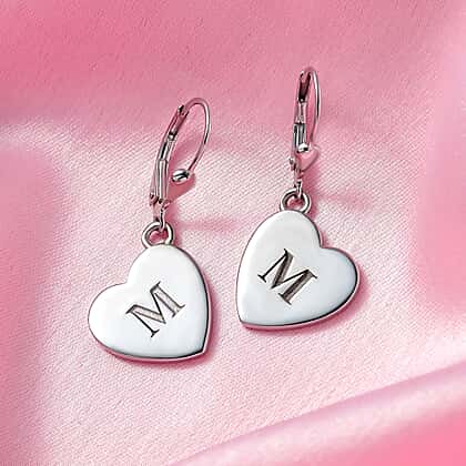 Personalised Engravable Heart Drop Initial Earrings in Silver