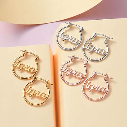 Add a touch of elegance and personalisation to your jewellery collection with these Engravable Round Name Earrings in Silver. These beautiful earrings feature a delicate silver round design with your chosen name engraved in stunning script. The additional overlay options of gold, rose gold, or platinum makes it easy to match with any outfit. Made from high-quality silver, the earrings are durable and long-lasting. Perfect for any occasion, the Engravable Round Name Earrings in Silver is a unique and personal accessory to add to your collection, showcasing your style and personality.