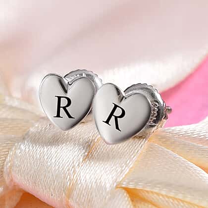 Personalised Rhapsody Platinum Heart Studs Earrings
