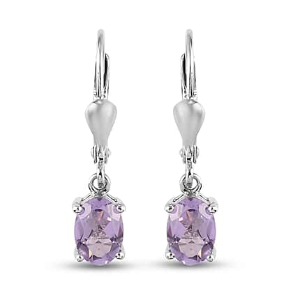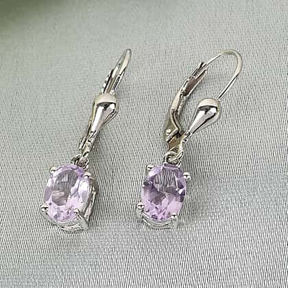 Pink Amethyst Lever Back Earrings in Platinum Overlay Sterling Silver 1.39 Ct.