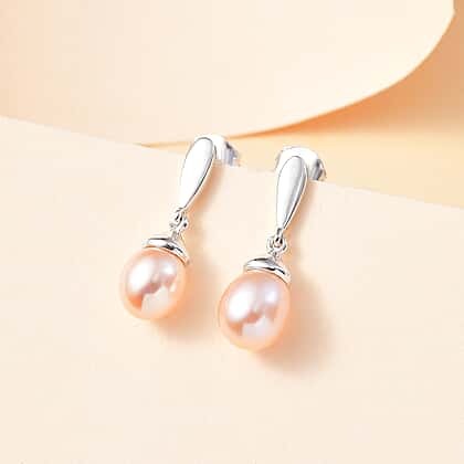 Pink Fresh Water Pearl Drop Earrings in Sterling Silver