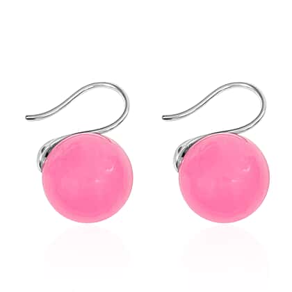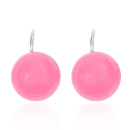 38 Ct. Pink Jade Bead Earrings in Silver Tone