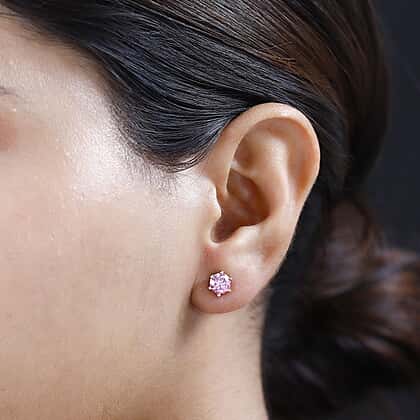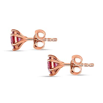Pink Moissanite Solitaire Stud Earrings in 18K Rose Gold Vermeil Plated Sterling Silver 1.50 Ct.