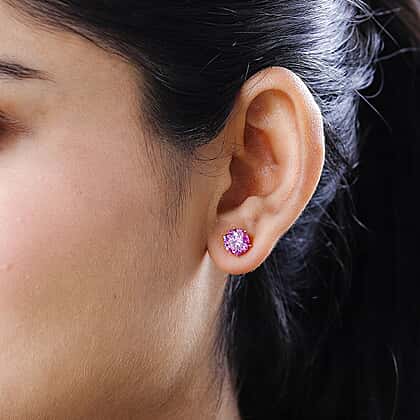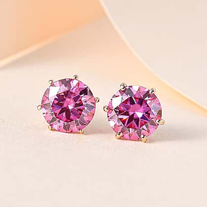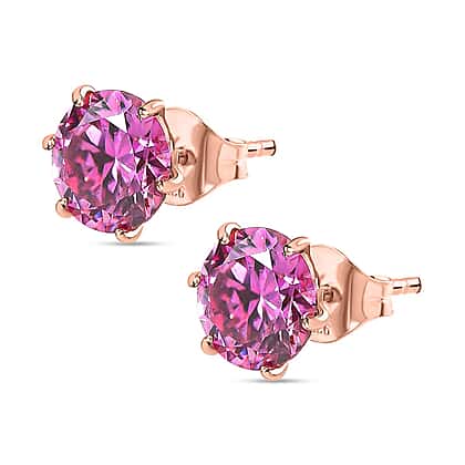 Pink Moissanite Stud Solitaire Earrings with Push Back in 18K Vermeil Rose Gold Plated Sterling Silver 3.58 Ct.