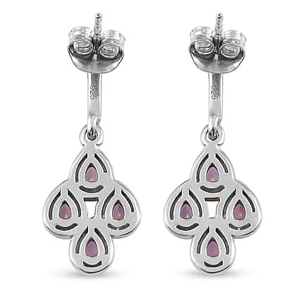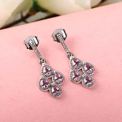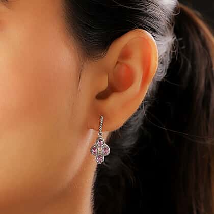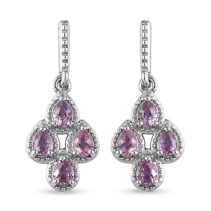 1.36 Ct. Pink Sapphire Drop Earrings in Platinum Plated Sterling Silver