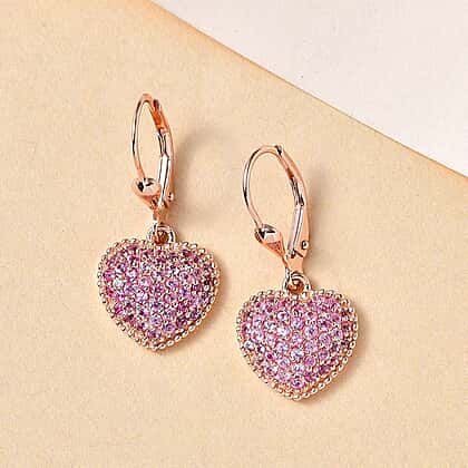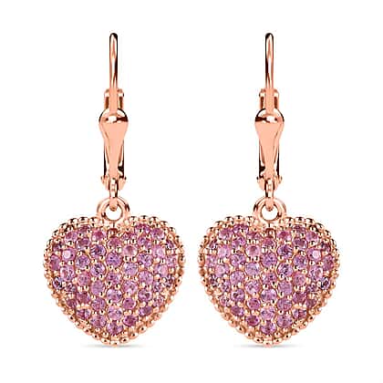 Pink Sapphire Heart Earrings in 18K Rose Gold Vermeil Plated Sterling Silver 1.42 Ct