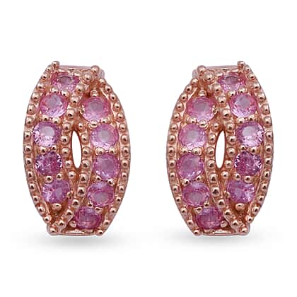 Pink Sapphire Stud Earrings (with Push Back) in Rose Gold Sterling Silver 1.40 Ct.