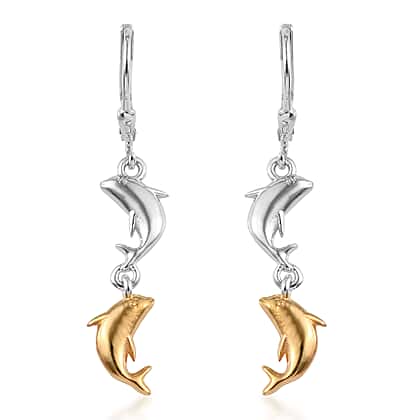Platinum and Yellow Gold Overlay Sterling Silver Dolphin Earrings