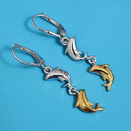 Marinus Collection Dolphin Lever Back Earrings in Platinum and Gold Plated Silver