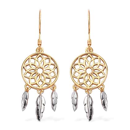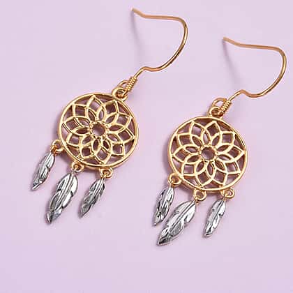Platinum and Yellow Gold Overlay Sterling Silver Dreamcatcher Earrings