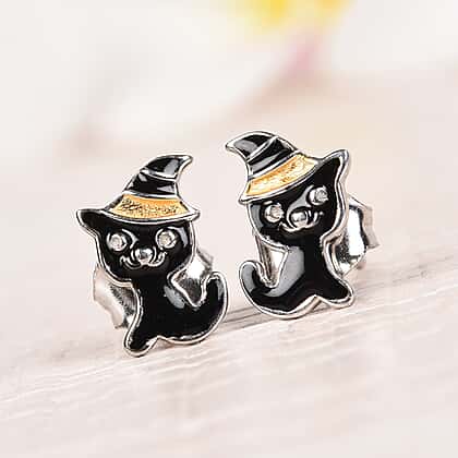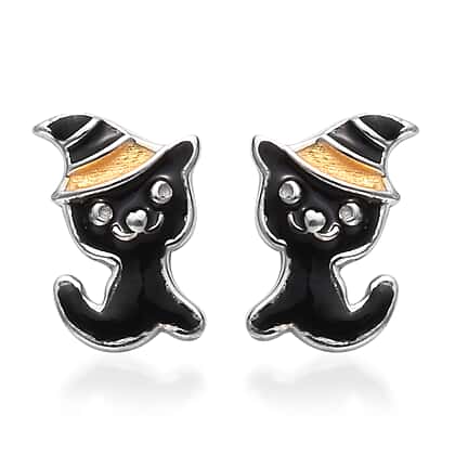 Halloween Special Kitten Earrings in Platinum and Gold Plated Silver