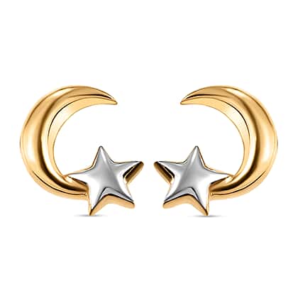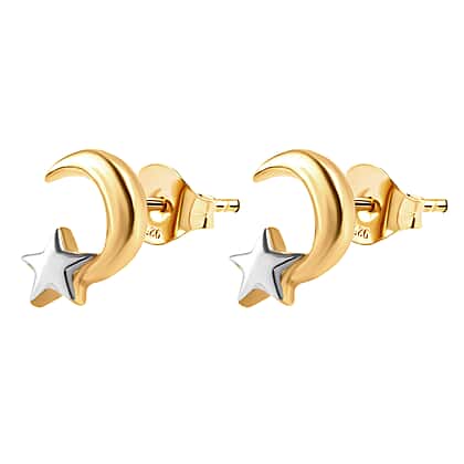 Platinum and Yellow Gold Overlay Sterling Silver Star & Moon Stud Earrings (With Push Back)