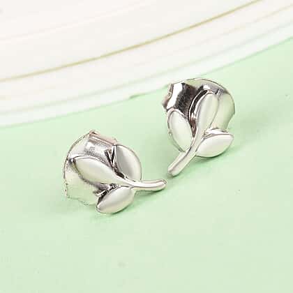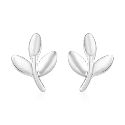 Platinum Overlay Sterling Silver Leaf Earrings (with Push Back)