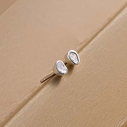 Polki Diamond Earrings (With Push Back) in Sterling Silver