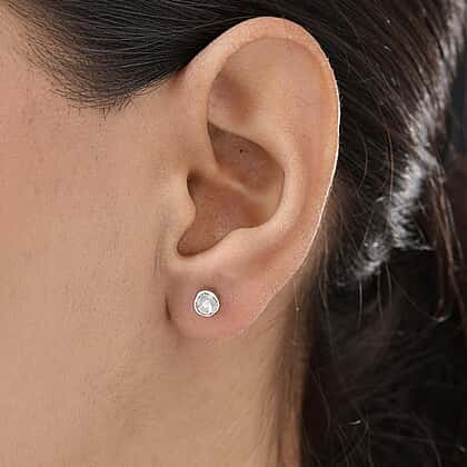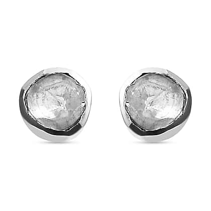 Polki Diamond Stud Earrings (with Push Back) in Platinum Overlay Sterling Silver