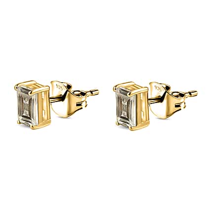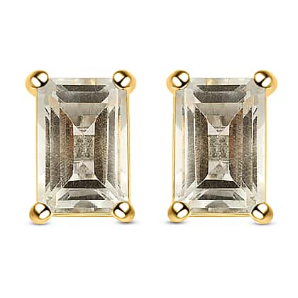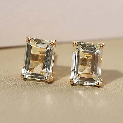 Prasiolite Stud Earrings with Push Back in 18K Vermeil Yellow Gold Plated Sterling Silver 1.95 Ct.