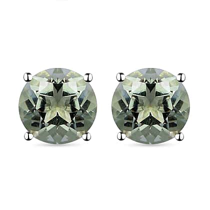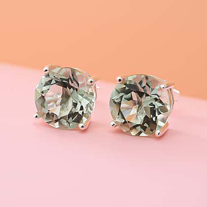 Green Amethyst Stud Earrings in Platinum Plated Sterling Silver 5.00 Ct.