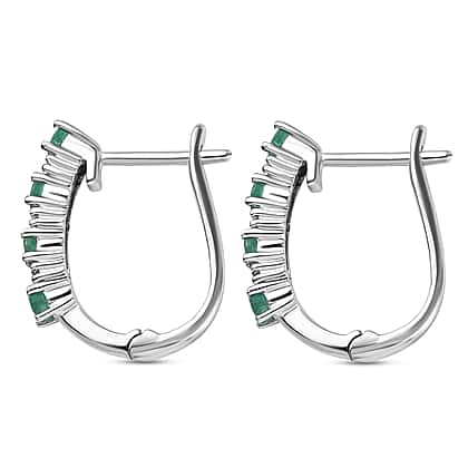 0.550 Ct. Premium Emerald and Natural Cambodian Zircon Hoop Earrings in Platinum Plated Sterling Silver 2.170 Grams