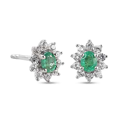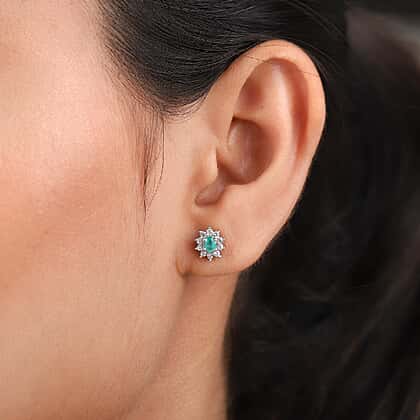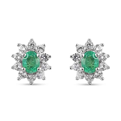 0.70 Ct. Santa Teresa Emerald and Zircon Floral Stud Earrings in Platinum Plated Sterling Silver