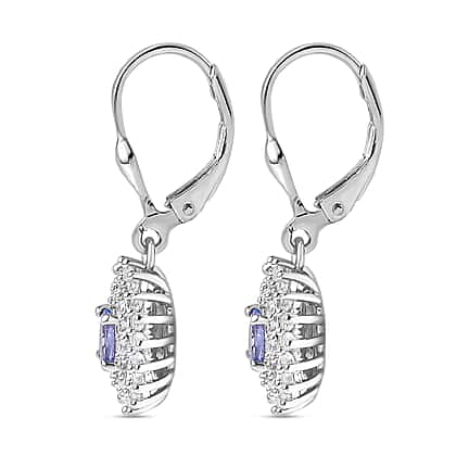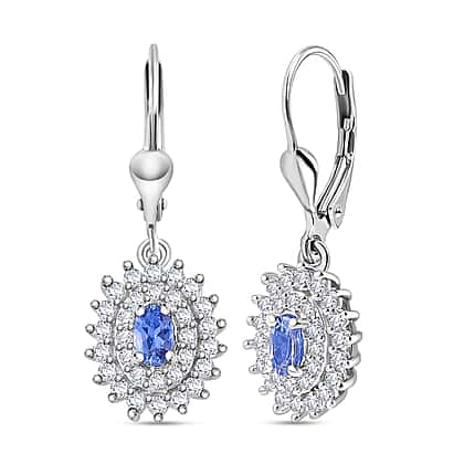 Premium Tanzanite & Natural Zircon Lever Back Earrings in Platinum Overlay Sterling Silver 1.43 Ct.