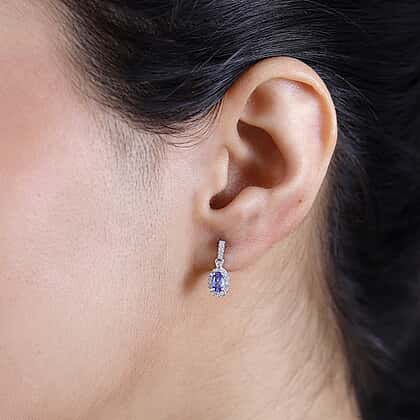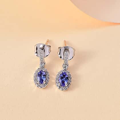 Add a touch of elegance and grace to your jewellery collection with these exquisite tanzanite and white zircon dangling halo earrings. The deep, captivating blue of the tanzanite ovals is framed by a halo of dazzling white zircons, creating a luxurious look that is perfect for both formal occasions and special events. The dangling design adds movement and allure to your style, making a statement with every step. Crafted in rhodium overlay sterling silver, these earrings are designed to last and shine for years to come, giving you a versatile and timeless accessory.