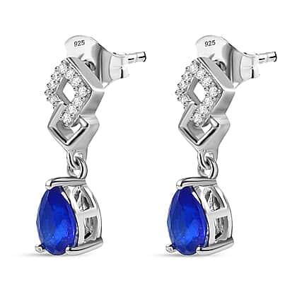 Premium Vietnamese Cobalt Blue Spinel & White Zircon Dangling Earring With Push Back in Rhodium Overlay Sterling Silver 1.58 Ct.