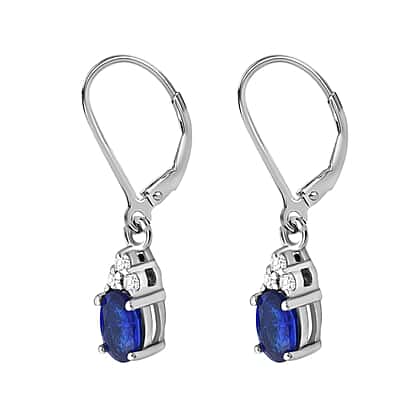 Premium Vietnamese Cobalt Blue Spinel & White Zircon Earring with Lever Back in Rhodium Overlay Sterling Silver 1.21 Ct.