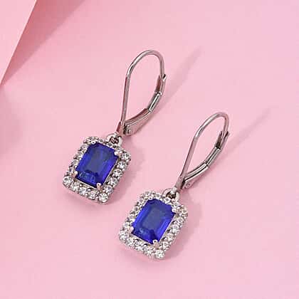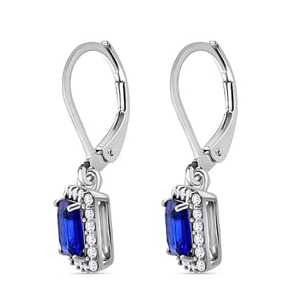 Premium Vietnamese Cobalt Blue Spinel & White Zircon Earring With Lever Back in Rhodium Overlay Sterling Silver 2.86 Ct.