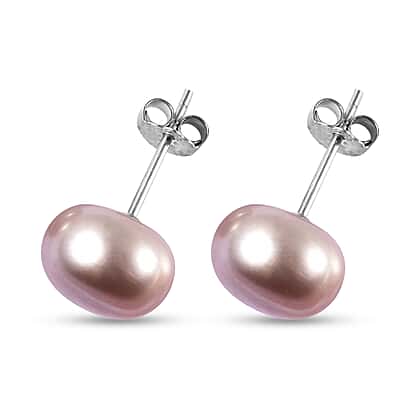 Purple Freshwater Pearl Stud Earrings in Rhodium Overlay Sterling Silver
