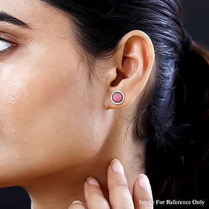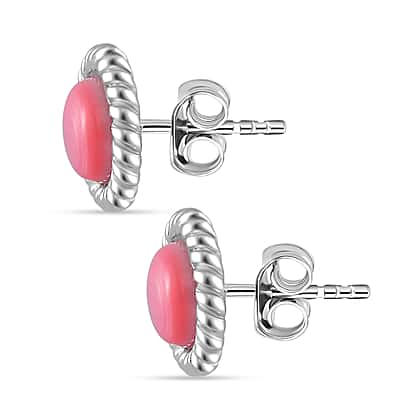 Pink Conch Shell Solitaire Stud Push Post Earring in Rhodium Overlay Sterling Silver, 4.000 Ct.