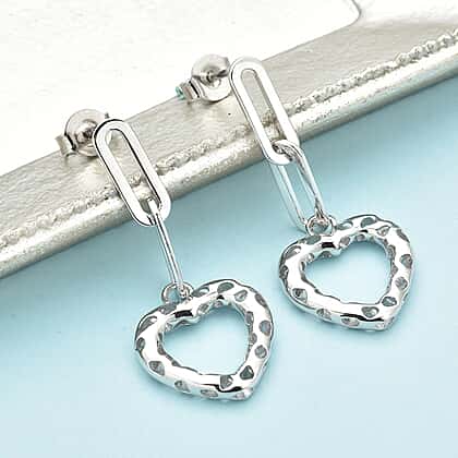RACHEL GALLEY Amore Collection - Rhodium Overlay Sterling Silver Heart Paperclip Earrings (With Push Back)