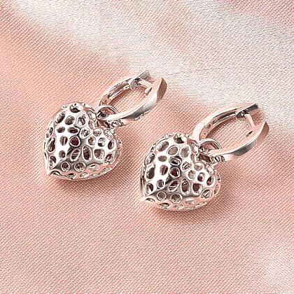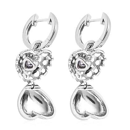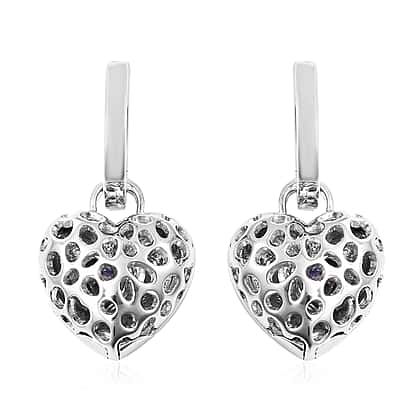 RACHEL GALLEY Angel Heart Collection - Tanzanite Lattice Heart Charm Hoop Earrings (with French Clip) in Rhodium Overlay Sterling Silver