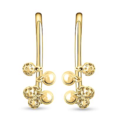 RACHEL GALLEY Bold Lattice Collection - Yellow Gold Overlay Sterling Silver Dangling Lattice Ball Earrings (with Push Back), Silver wt. 8.66 Gms