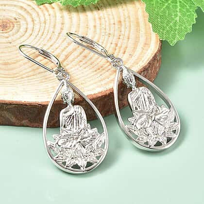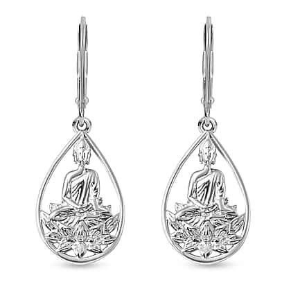 Buddha Collection Rachel Galley Buddha Drop Dangle Earrings in Rhodium Plated Sterling Silver