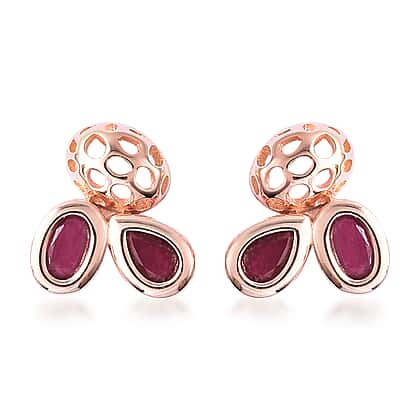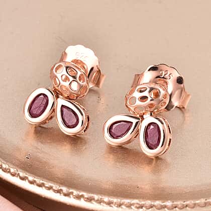 - The frame of the earrings is made using Rose Gold Overlay Sterling Silver, matching the rubies